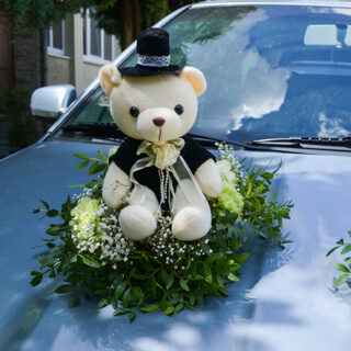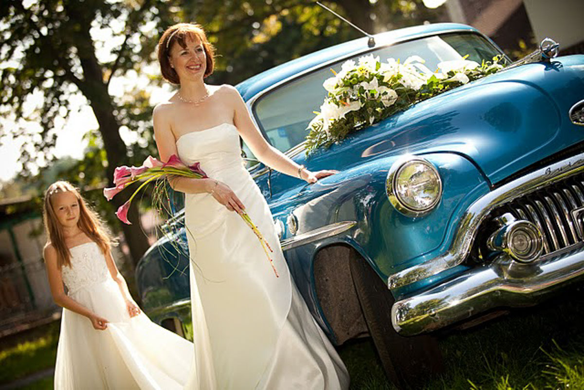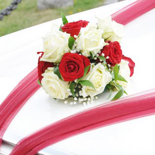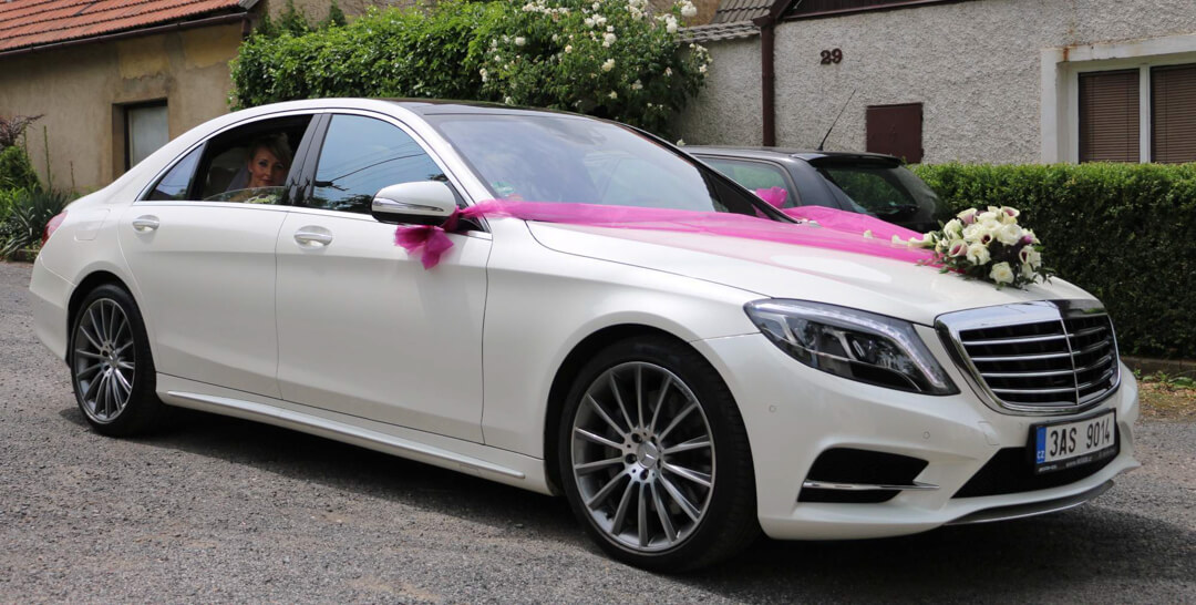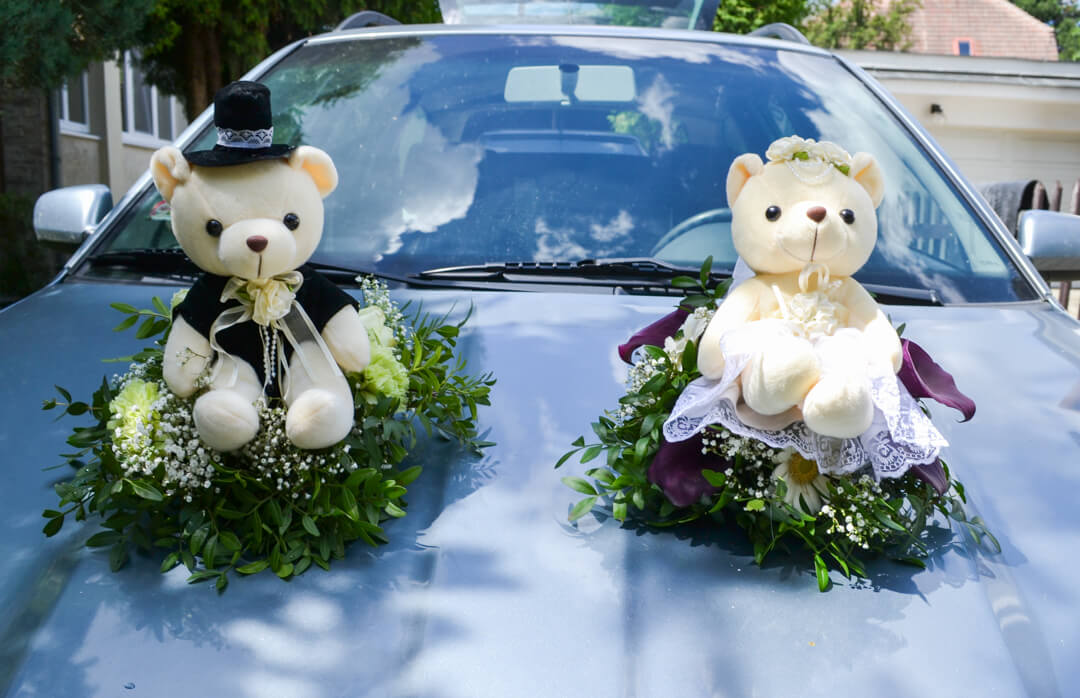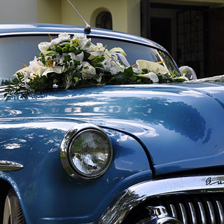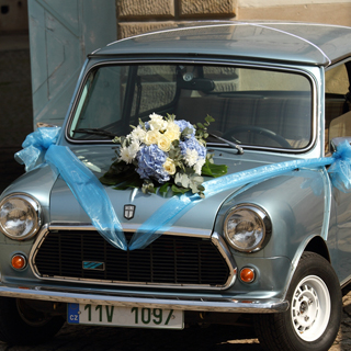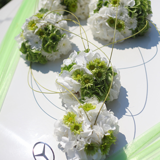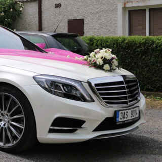 - květinová dekorace automobilu pro nevěstu, ženicha a ostatní automobily svatební kolony