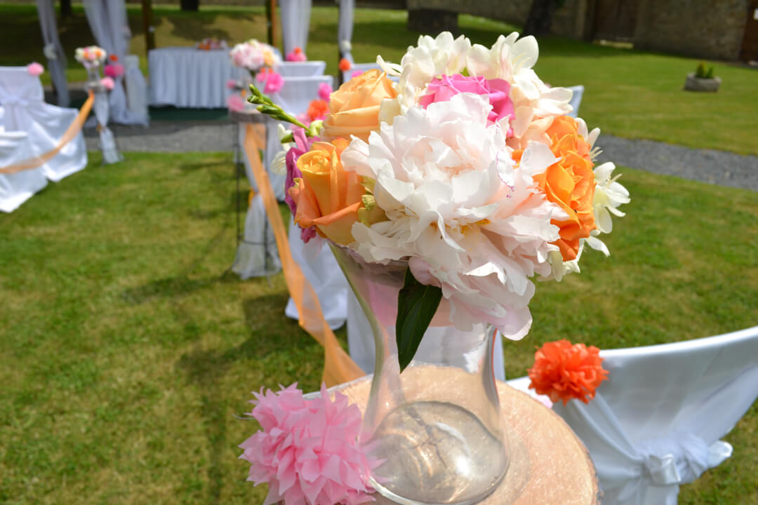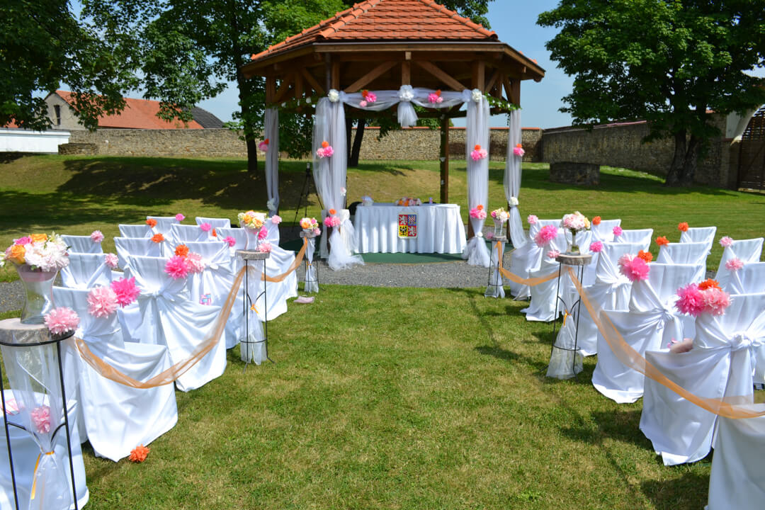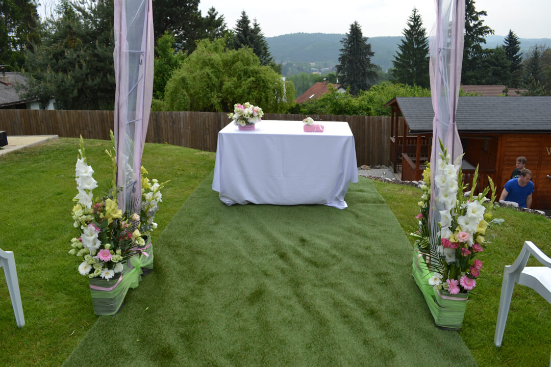 - dekorace obřadního místa (kostel, altán, sál, oddávací síň, louka, atd.)