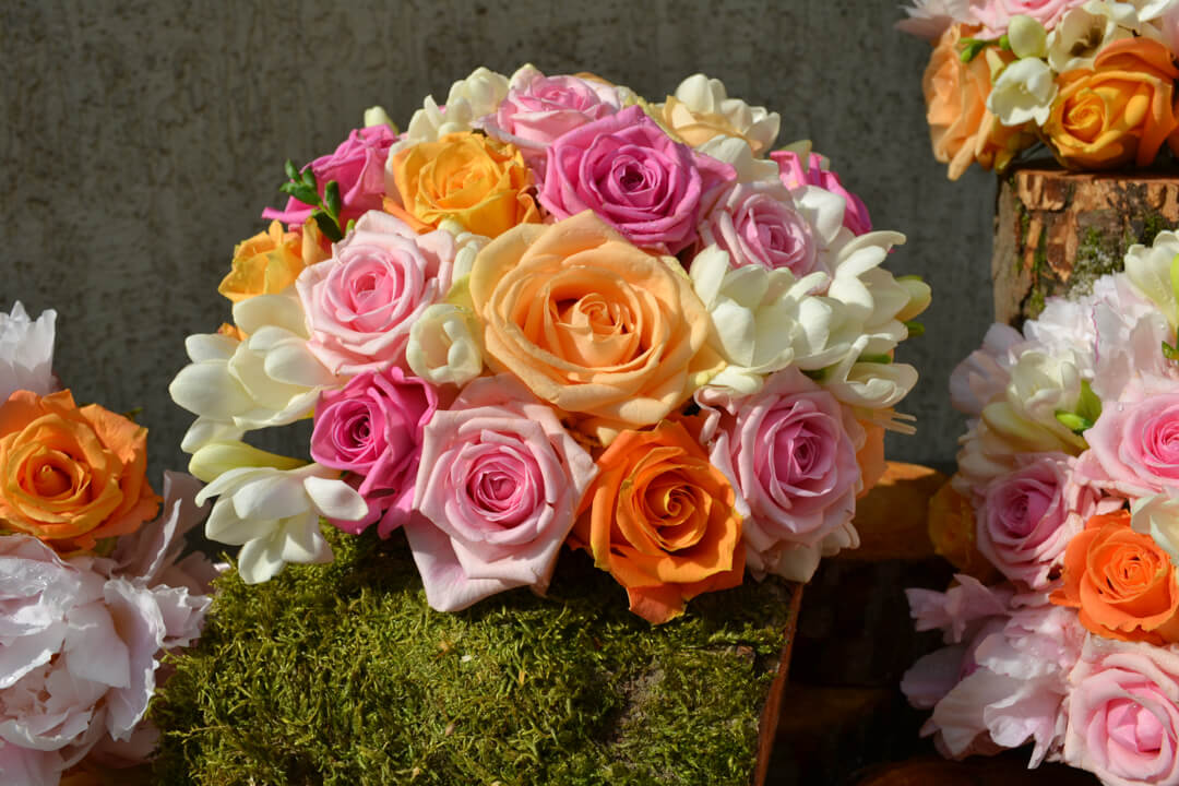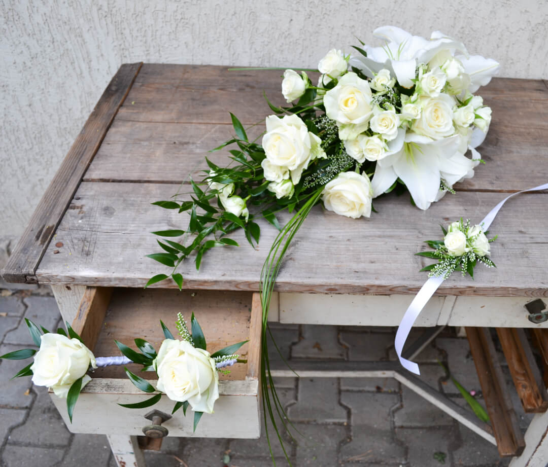 Studio Flores nabízí kompletní svatební květinový servis včetně doručení a instalace na místo svatby, hostiny či obřadu.